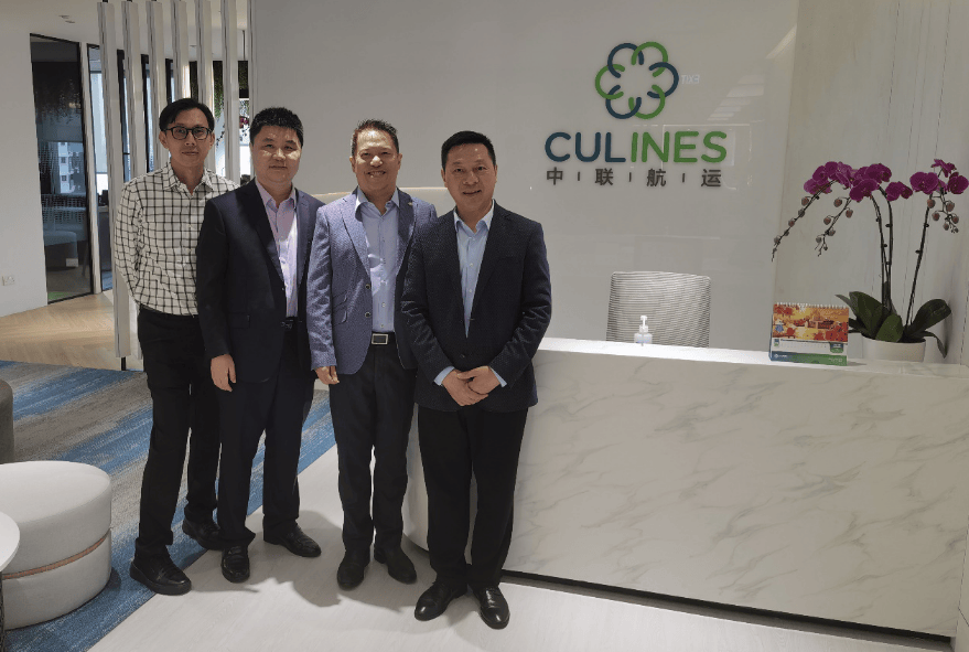 5月9日上午,代表团成员与中联航运班轮业务及新加坡总部总裁张友彬(右二),座谈后合影