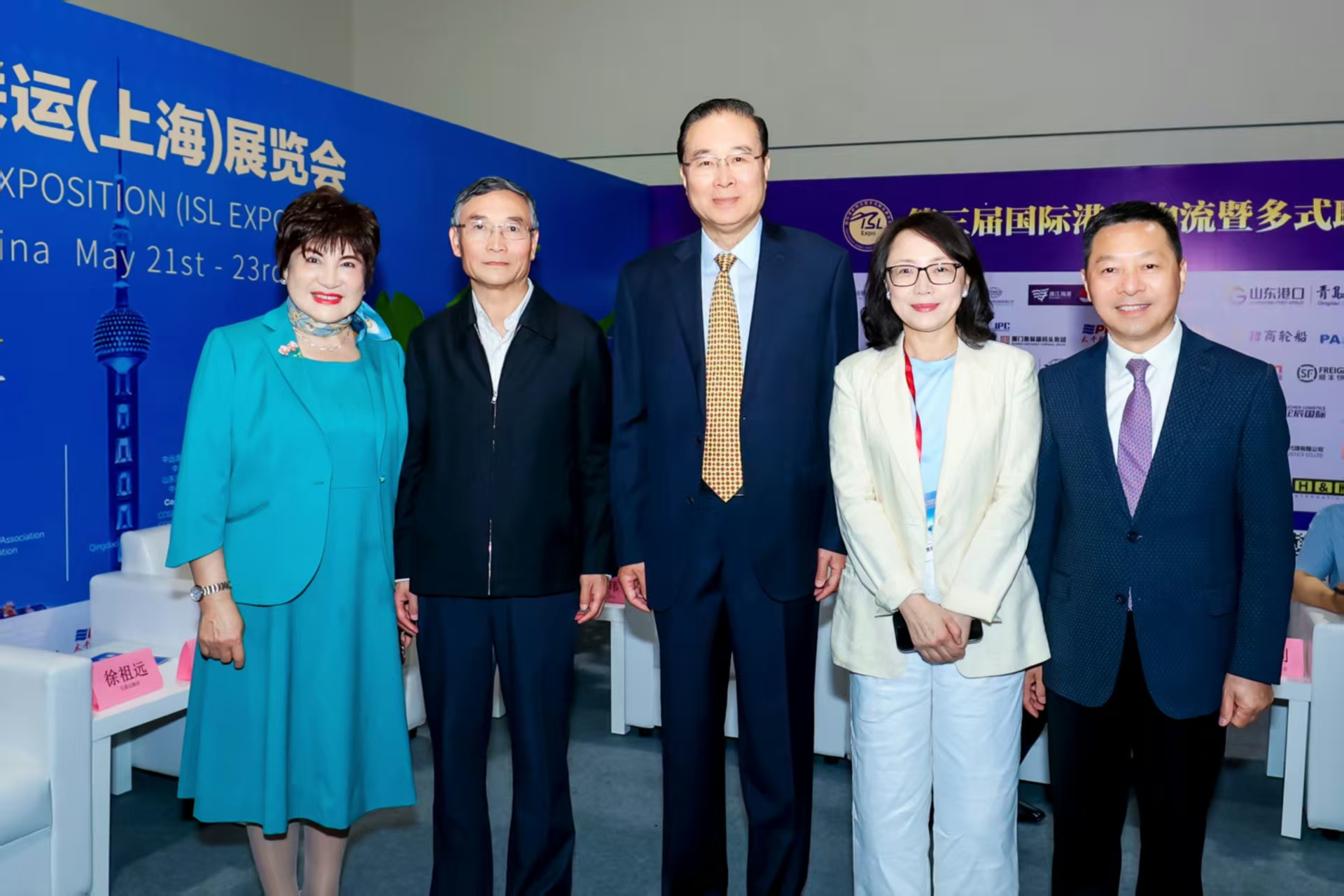 Zhang Chunzhi (1st from left), Vice President of China Communications and Transportation Association; Li Gang (2nd from left), Vice President and Secretary-General of China Communications and Transportation Association; Ni Wei (middle), Founder and President of China Shipping Gazette (CSG); Guo Xin (2nd from right), President of Ningbo International Logistics Development Co., Ltd. and ISEA Ningbo Port; Wang Xiuping (1st from right), Secretary-General of China Communications and Transportation Association - Shipping and Logistics Branch (CCTA-SLB) and Chief Commercial Officer of ISEA